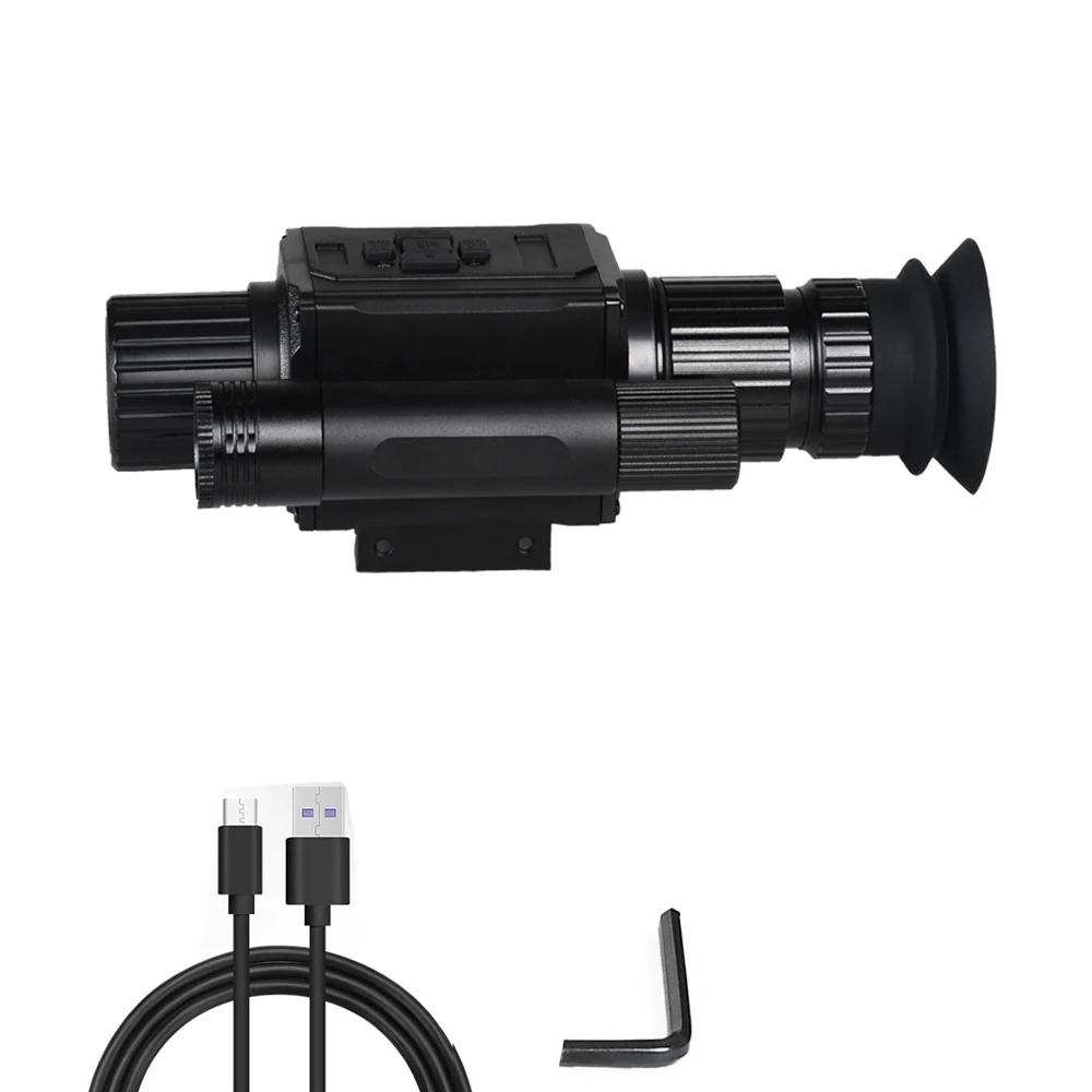 Digital Night Vision Scope Infrared Optics Monocular Riflescope 5X Zoom HD 1080P Video Hunting Camera NK008 1, NK008 is HD 1080P Digital Infrared Night Vision Riflescope, It&;s supreme for shut and long fluctuate hunting, surveillance, animal remark in daylight hours or in complete darkness night 2, Day and Night Clear Vision Hunting Camera:Features 2MP FHD 1080P CMOS sensor, 50mm wide objective lens, 4x magnification + 5x digital zoom, built-in 850nm IR illuminator with three gears IR stages adjustment allow to observe animals obviously at evening Clear visibility as much as 400m/1312ft distance in darkness, more than 3280ft/1000m at sunlight hours You can view complete HD picture straight at the 1 inch full display reveal 3, Taking Photo and Recording Video: 1920*1080P HD video size, listing audio, take photograph & checklist video of wildlife and stored at the memory card A must-have piece of searching gear and kit for evening looking 4, Powerful Recoil Resistance and Durable:The NK008 Night vision scope is compact and lightweight, clean to hold Made of positive alloy metallic material with strong and durable design Easily handle not less than 6000j influence strength, rated for use with caliber 5, Easy To Install: NK008 Scope Sight features 20mm rail mount can be mounted on maximum of setup Built-in adjustable reticle, zoom in/out from 1X to 5X with the center of crosshair, Achieve exact accuracy NOTE: The 50mm lens, 50 is the focal length, not the scale of diameter, please understand, Thank you