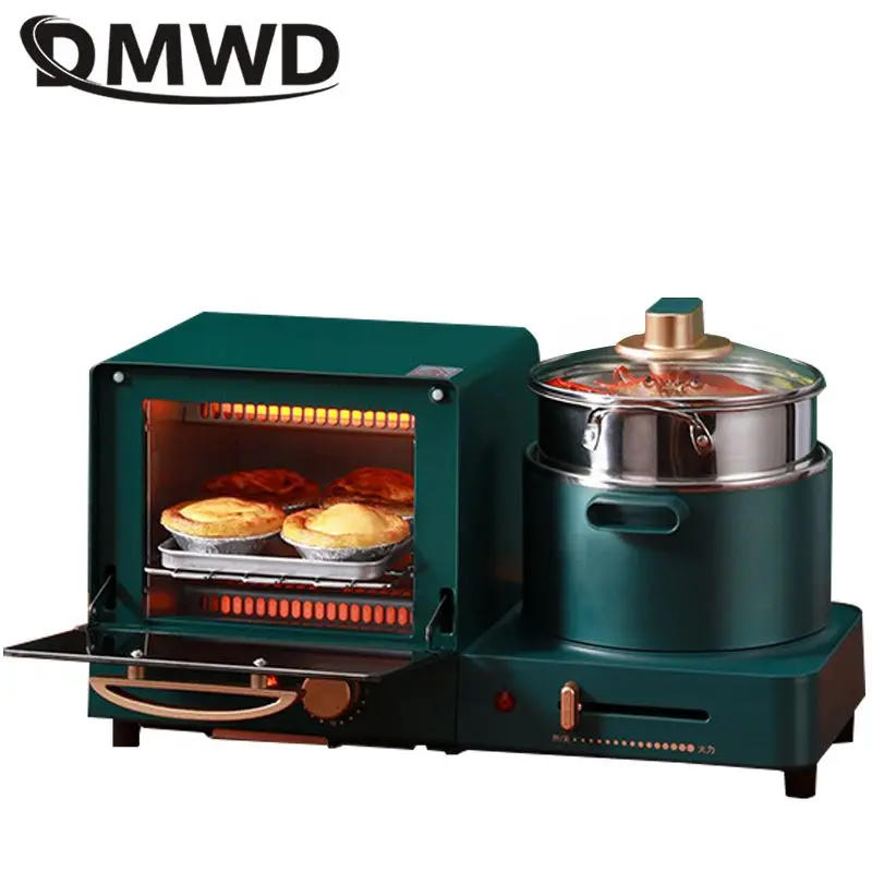 DMWD 4 in 1 Household Electric Breakfast Machine Toaster Frying Pan Mini Oven Bread Sandwich Pizza Maker Hot Boiling Pot Steamer