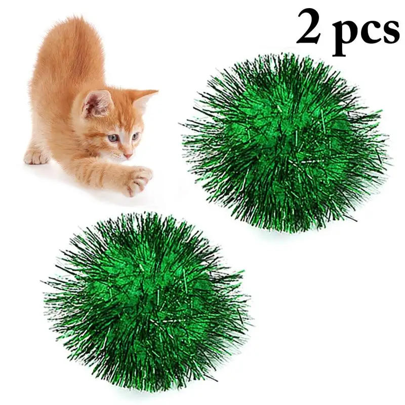 Dorakitten 2Pcs/Set Pet Ball Toys 2in Bite Resistant Tinsel Pom Pom Glitter Pom Pom For Cat Pet Supplies Cat Favors
