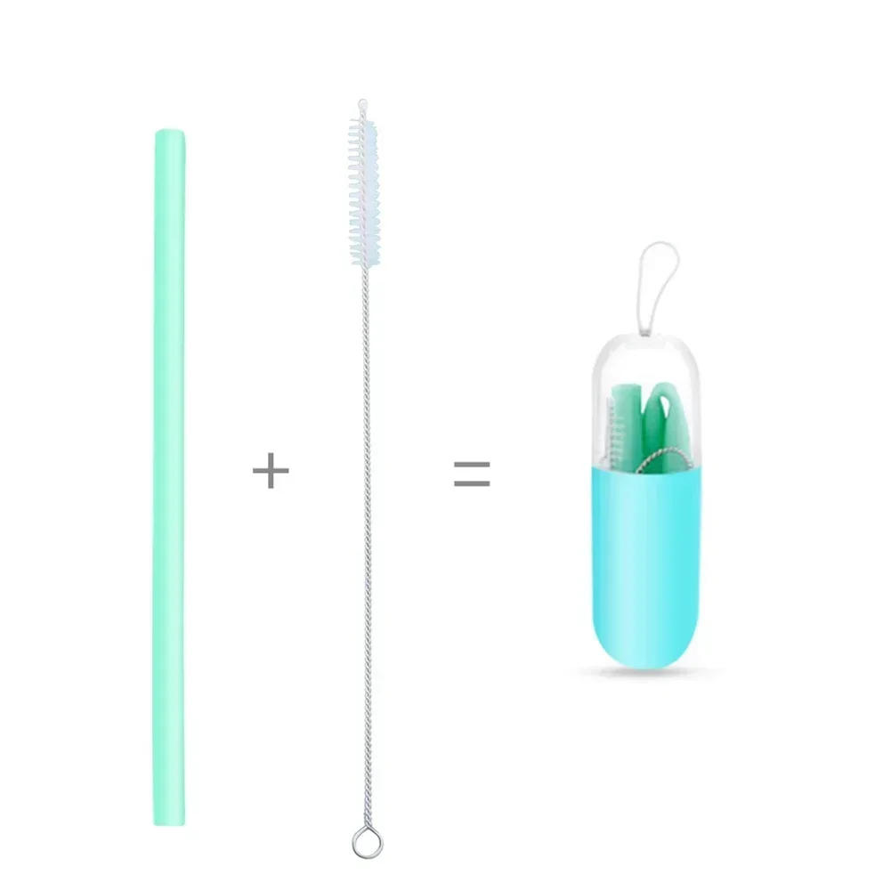 Drinking Silicone Straws Reusable Folding Portable Outdoor With Case Cleaning Brush Set Party Bar Drinkware Accessory