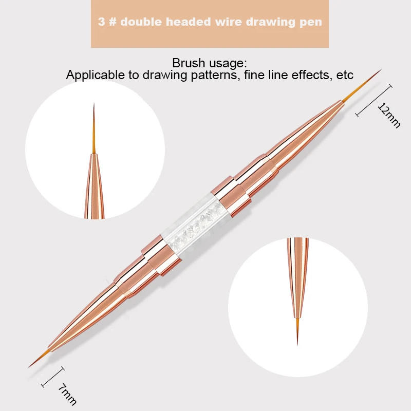 Dual-ended Nail Brush French Stripe Brushes Manicure Liner Brush 3D Tips Ultra-thin Line Drawing Pen UV Gel Painting Brushes Description: Product category: nail brush Material: metal, nylon Color: gold Size: as proven within the figure Specifications: 1 Nylon brush, agency and applicable, comfortable and elastic, easy to function 2 PV, crystal drill pen holder, uncomplicated style, glad texture and stylish look 3 Double stress metal pen bucket is used, so the brush is not easy to fall off four Comfortable grip, demanding to shed hair, good harmony five Several brushes of different sizes are compatible for various purposes Package Included: 1* nail brush Notes: As the monitor has diverse colour differences, please check with the actual product for the color of the product Product sizes are measured manually, there are bound errors, please talk to the particular product