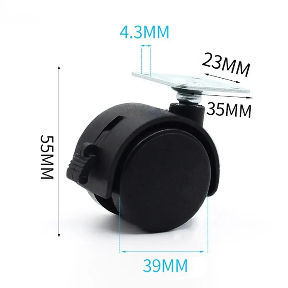 Durable Nylon Cart Casters Plastic Silent Swivel Plate Casters Black Replacement Accessories Luggage Wheel Office Computer Chair