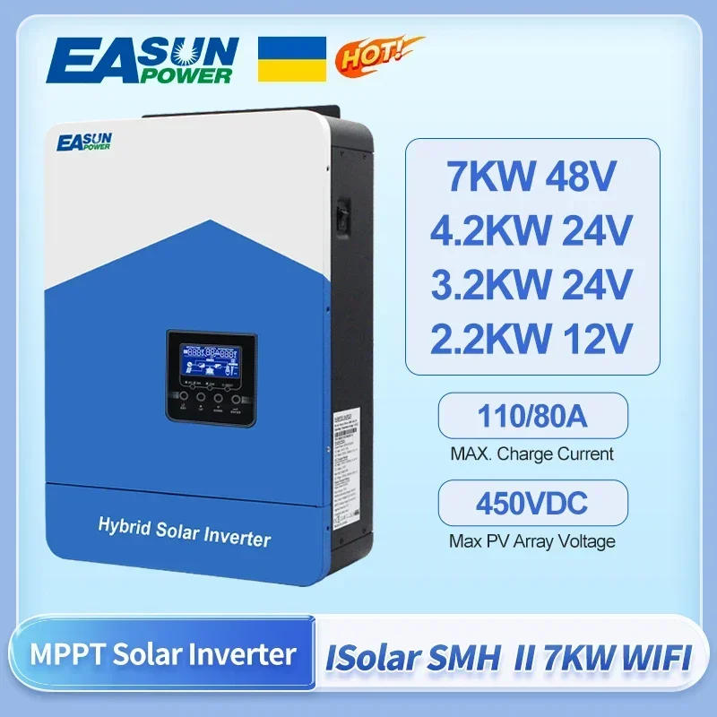 EASUN POWER Hybrid Solar Inverter Pure Sine Wave MPPT 7KW 4.2KW 3.2KW 2.2KW 12V 24V 48V 220v Solar Charger Power Home Inversor