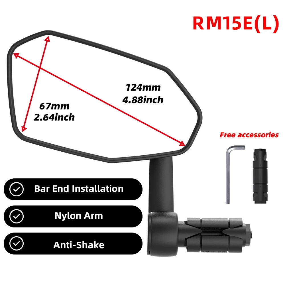 NEW ARRIVAL BIKE MIRROR YOUR BEST CHOICE FOR RIDING! Features for the Best Seller No More Block Vision: You can alter the mirror arm up and down to attain longer, geared up with wide glass mirror, cut blind spots brought on by hands or shoulders Wide Angle Rearview: Easydo Bike Mirror with Polygon outer Expansion design uses automotive–grade ultra clear mirror, effectively expand your imaginative and prescient to grasp rear street conditions Anti–Shake & Anti–Fall: Designed with aluminum alloy mirror arm for anti shake and drop resistance, guarantees lasting sturdiness and reliability Easy Installation: The package comes with the hexagonal wrench,when you acquire the bicycle mirror, you may easily set up the replicate in a few minutes and modify the angle on your desire Easy Installation Muti–Angle Rotation 360 Rotatable Mirror Arm Reach Longer For a Wider Vision Wider Mirror Area of Vision Anti–Loosening Design Scene Display for RM15 Scene Display for RM15E