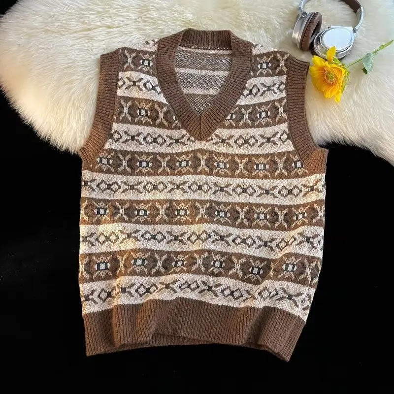 EBAIHUI Ethnic Style Men's Sweater Vest Vintage V-neck Preppy Style Male Knitted Tank Top Autumn Winter Casual Versatile Top
