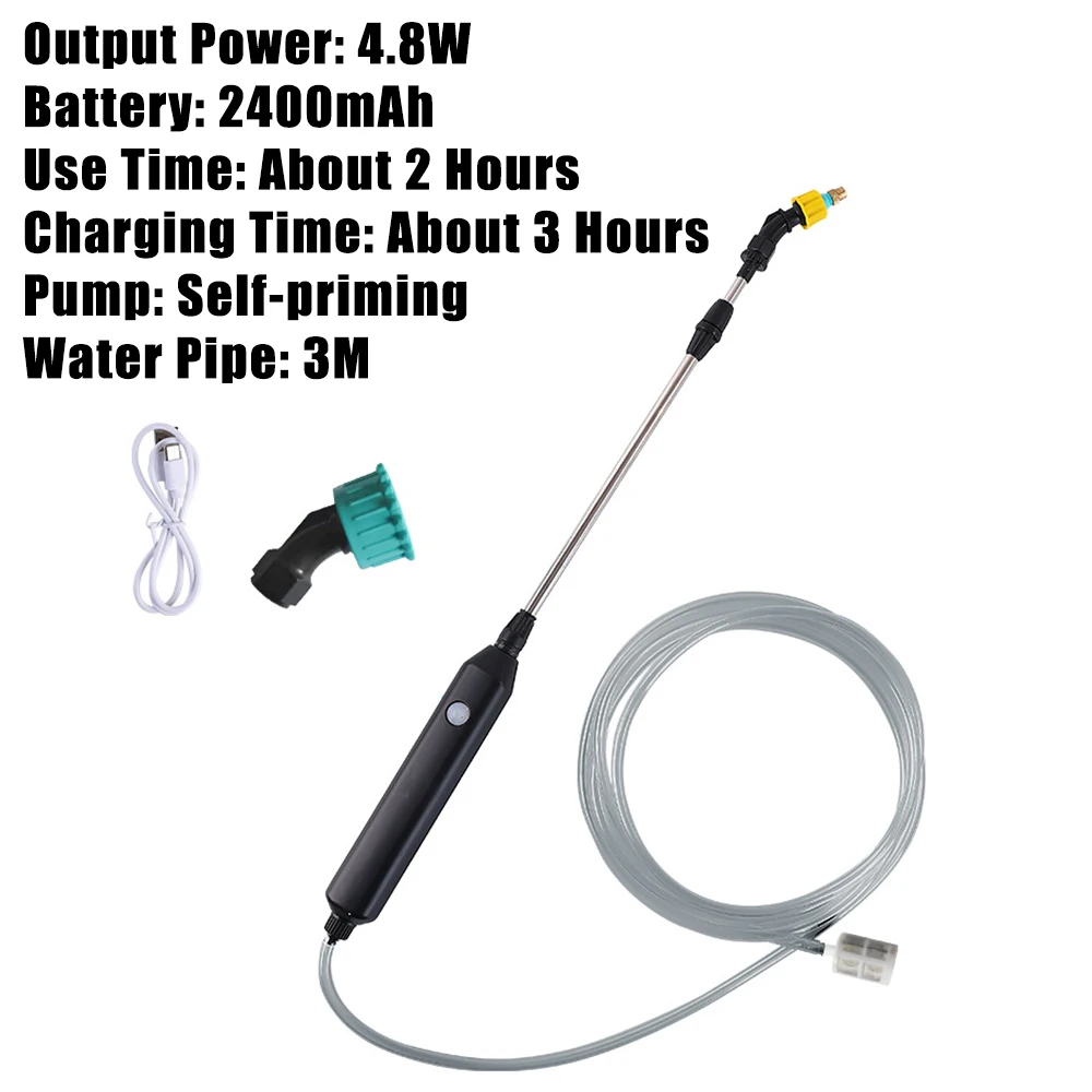 Features: One button start, automated water spraying, make it easier to unfastened your hands from continuous pressing and spraying Two modes, stepless adjustment, you would alter the rotating nozzle 360 degree, switching from DC to very fantastic fog With multi-directional sprinkler, which can water plants in multiple instructions by means of rotating, which saves calories and makes watering easier Extension rod and anti-skid handle, telescopic design, up to 60 cm long, increase your spraying fluctuate The extended manage conforms to the ergonomic design, which makes it really feel blissful and won't feel drained after long-time operation With 5L water bottle, integrated 2400mAh battery, lengthy lifestyles and speedy charging Suitable for watering plants and flowers, Cleaning car, Home cleaning, Disinfecting and sterilization Specifications: Battery Capacity: 2400mAh Bottle Capacity: 5L Material: ABS Handle, Stainless Steel Rod, PVC Pipe Power: 4 Working Time: About 2 Hours Charging Time: About three Hours Pump: Self-priming water pump Water Pipe: Telescopic Length to 60cm Adjustable Spout: Evenly atomizing/Water column spray Size: As demonstrate within the photo Package Included: 1x Water Bottle 1x Electric Spray Gun 1x Fan-shape Nozzle 1x USB Cable 1x Water Pipe