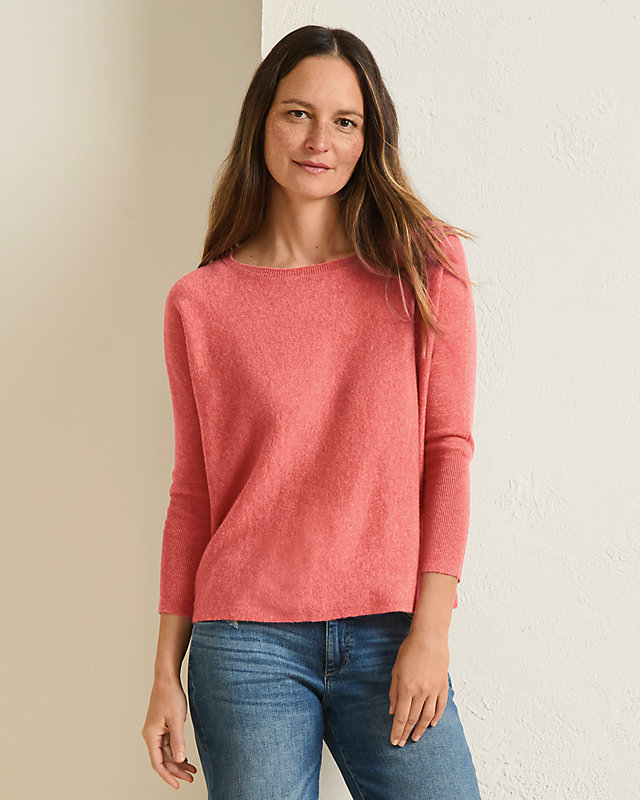 A cropped, boxy sweater with a flattering oversized fit, meticulously crafted in the world's finest cashmere for quality, sustainability, and exceptional softness. Part of the Cashmere Essentials Collection, providing a foundation of everyday luxury. Exclusive Wide, open neckline 3/4-length dolman sleeves with dramatic ribbed cuffs Imported