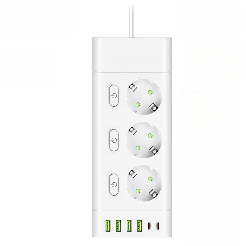 EU Plug Power Strip Multiple Independent Control Outlet Sockets 2m Extension Cord Electrical Socket with 4 USB 2 Type-C Ports