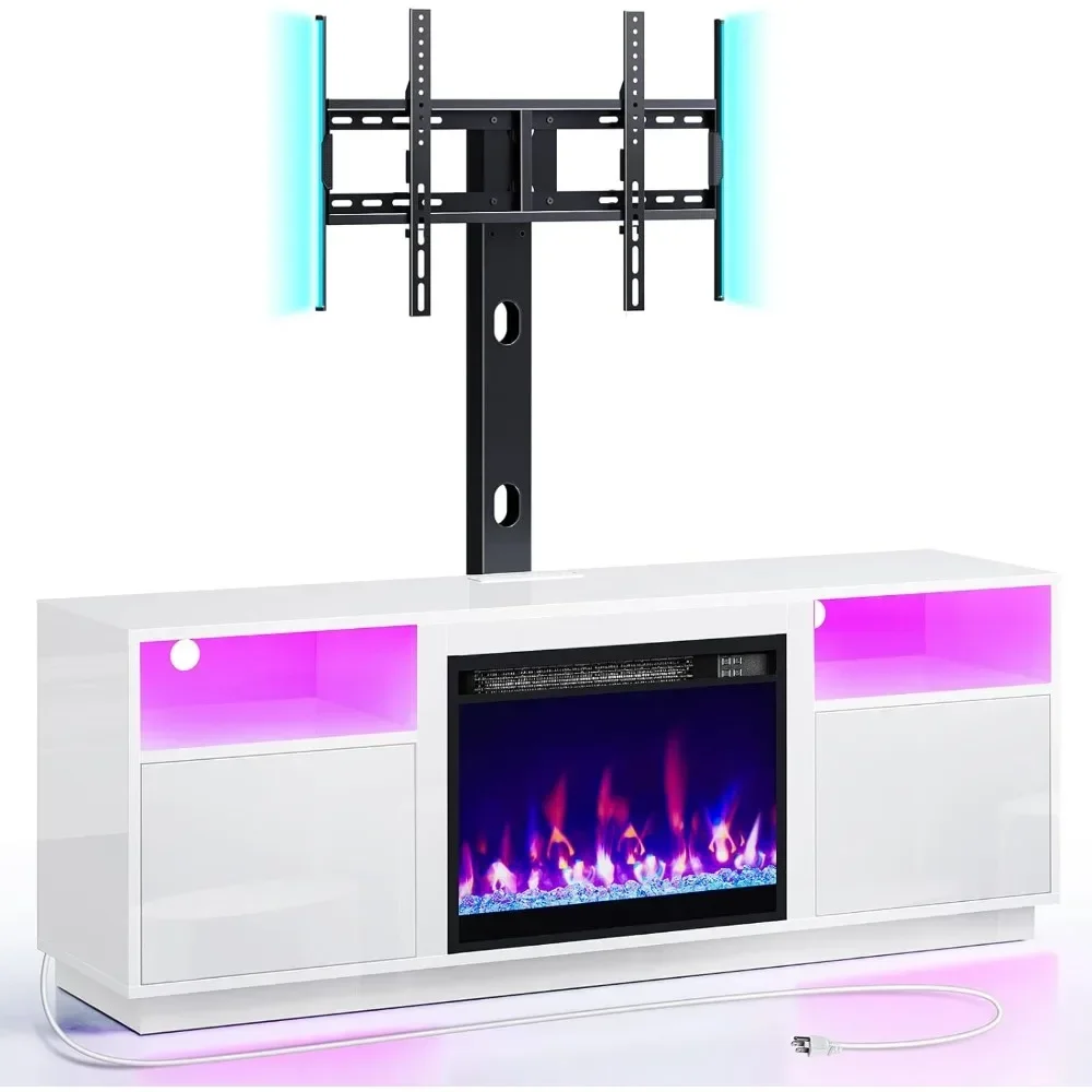 Fireplace TV Stand with Led Lights and Power Outlets, Entertainment Center with Electric Fireplace
