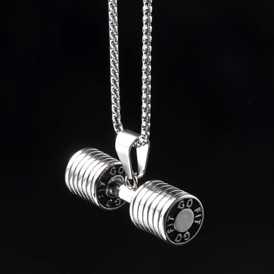 Fitness Dumbbell Pendant Necklace for Men - Workout Jewelry for Gym Enthusiasts