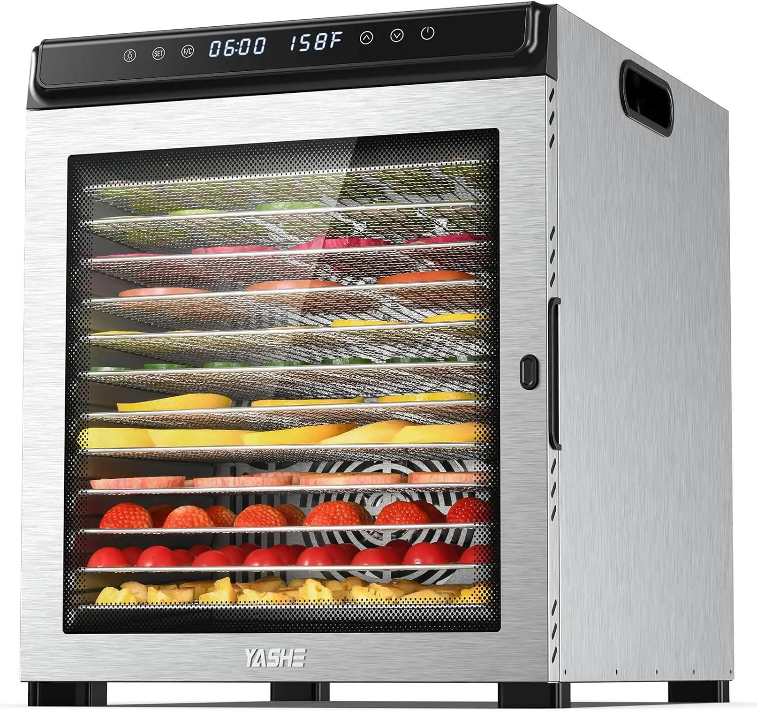 Efficient Drying Technology: The food dehydrator mechanical device is supplied with a powerful 1300W motor, two rear mount fans, and 360° airflow flow know-how This ensures fast, efficient, and even drying of varied foods, disposing of the will for rotating trays Perfect for dehydrators for food and jerky, it affords constant outcomes every time Customizable Control Panel: The LED exhibit control panel allows you to easily modify time and temperature settings, with a timer differ of 30 minutes to seventy two hours and a temperature range of 95°F-167°F/35°C-75°C This customization caters to a wide selection of dehydration needs, making it an ideal dehydrator for jerky and extra Spacious 12-Layer Design: With 12 stainless steel trays, 12 mesh screens, and 5 fruit roll sheets, this food dehydrator gives sufficient space for drying meats, vegetables, fruits, and herbs The wide capability design makes it a flexible fruit dehydrator and meat dehydrator for jerky, locking in diet and taste for all types of meals Safe and Quiet Operation: The dehydrator aspects computerized shutdown and integrated overheating protection for secure operation The advanced know-how ensures quiet performance, minimizing noise disturbances during use, making it a competent meals dryer dehydrator for any kitchen environment Durable and Easy to Clean: Constructed from robust stainless steel, the dehydrator machine is sturdy and simple to maintain The trays are product of food-grade BPA-free stainless-steel and are dishwasher safe A real looking recipe booklet is included, inspiring artistic snack-making and providing a user-friendly experience This meals dehydrator machine is perfect for creating a sort of homemade snacks from dried culmination and greens to jerky , /* Ensuring the carousel takes solely the distance it needs The sizes should be set back on the absolutely placed features to allow them to soak up space */ , /* This centers the carousel vertically on height of the hero image container and after the symbol field (125px) Margin-top = (heroHeight - cardHeight - logoAreaHeight) / 2 + logoAreaHeight */ /* Cards need to have a width set, otherwise they default to 50px or so All cards should have the same width The carousel will resize itself so all playing cards take the width of the largest card The left margin is for leaving an area between every single card */ /* styling the navigation buttons in order that they are taller, flush with the sides, and have a clean white background */ , , ,