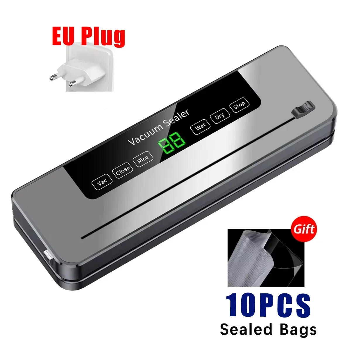 Food Vacuum Sealer Built-in Cutter Kitchen Food Storage Seal Dry Wet Food Vacuum Packaging Machine Touch Button with 10pcs Bags