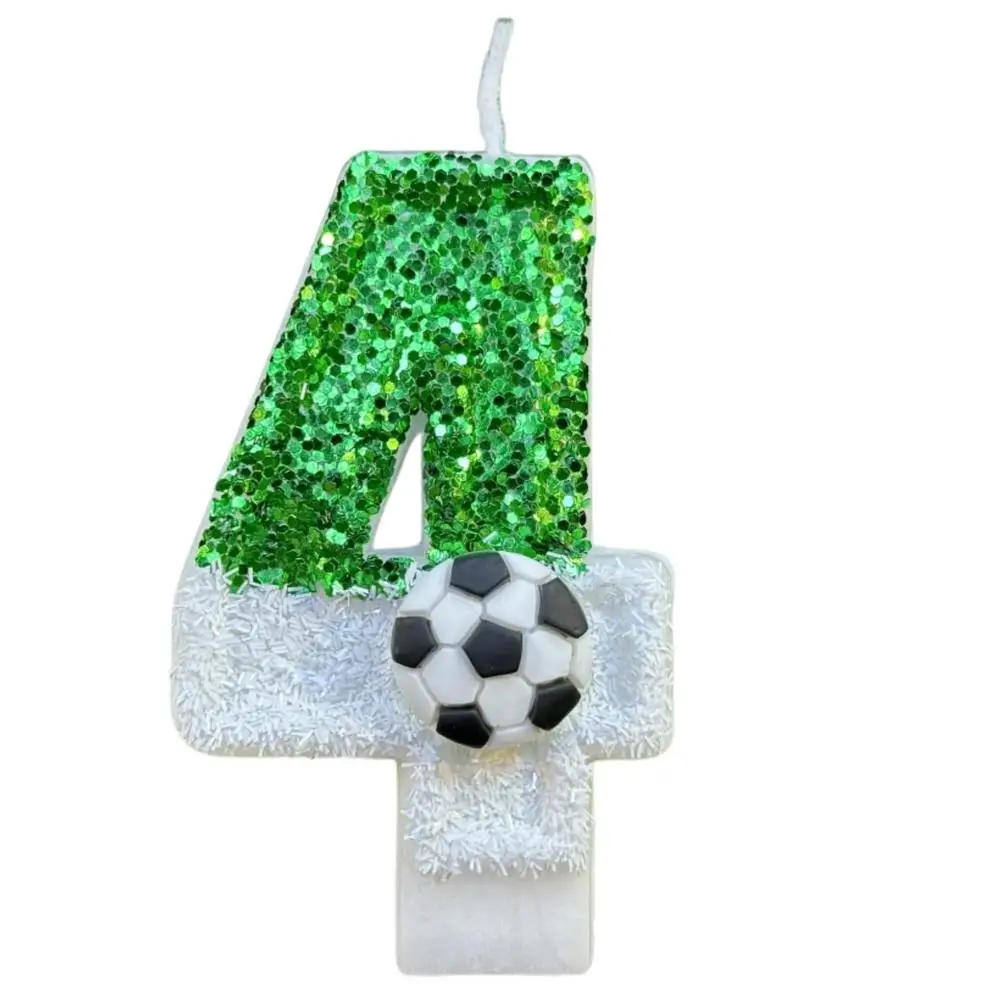 Football Children's Birthday Candles 0-9 Number Green Sparkles Birthday Soccer Ball Candle for Boy Party Cake Topper Decoration