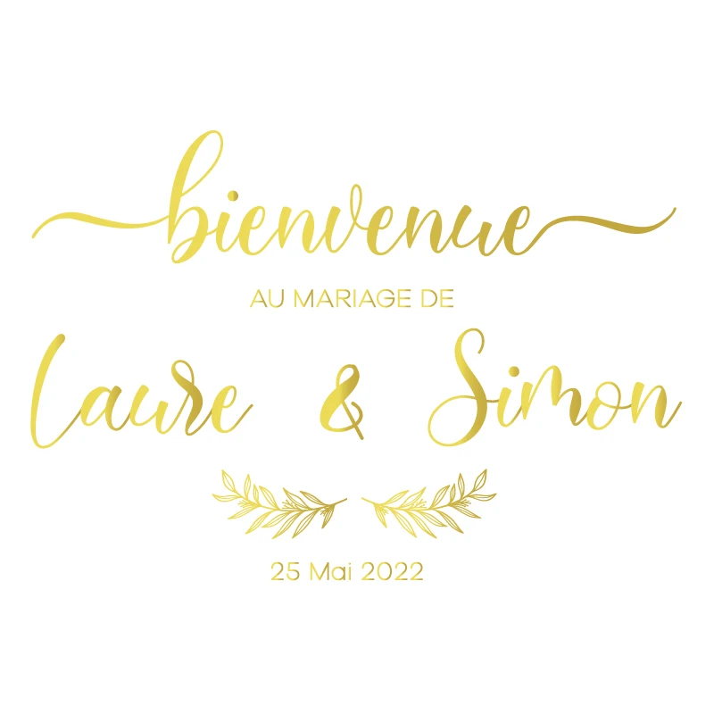 French Style Wedding Board Sticker Custom Names Date Vinyl Decal Wedding Welcome Sign Mirror Vinyl Mural Romantic Marriage Decor