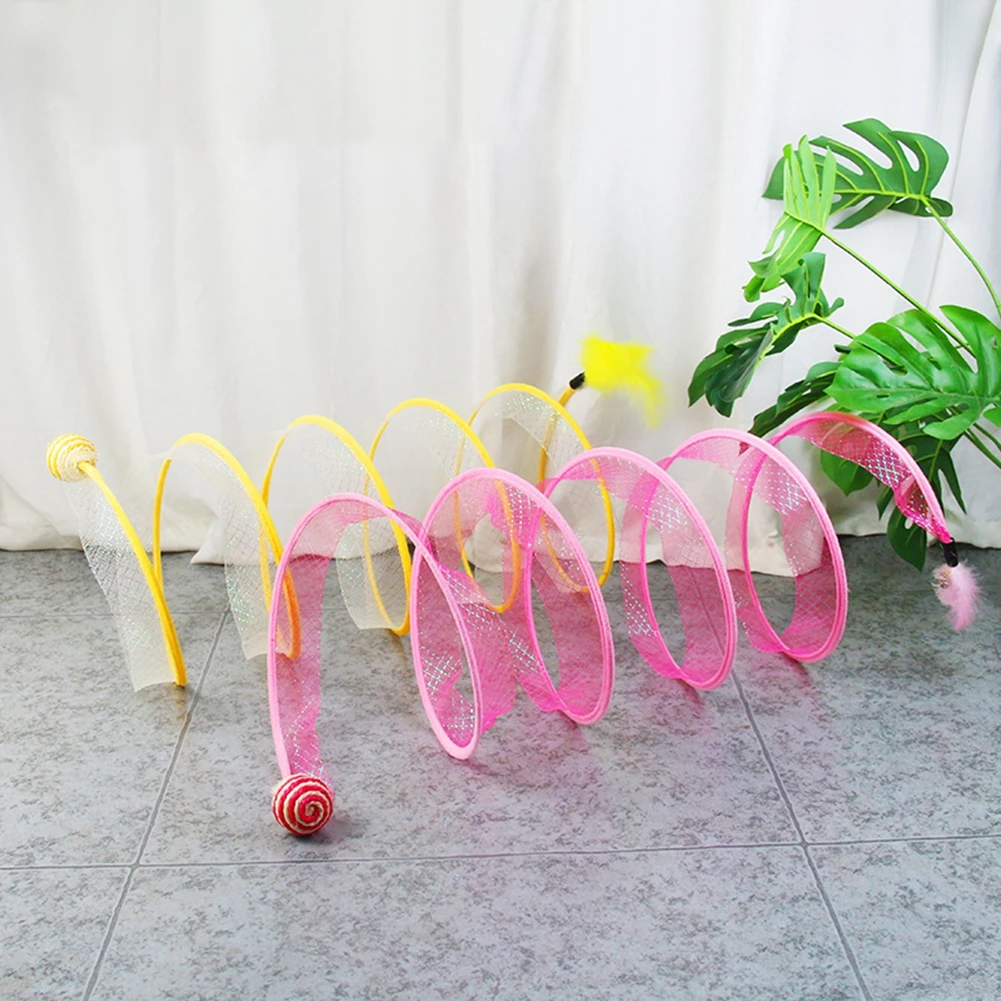 Fun And Entertaining S-Type Elastic Mesh Tunnel Cat Foldable Storage Rolling Dragon Self Hi Toy Pink Sisal Ball Pet Fun Toy