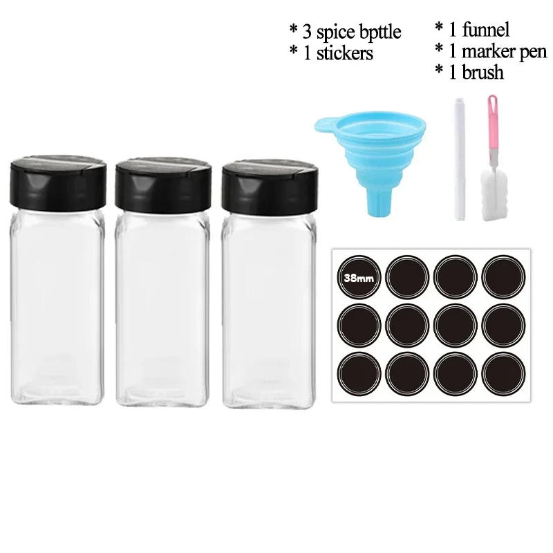 Glass Spice Jars with Bamboo Lid Spice Seasoning Containers Salt Pepper Shakers Spice Organizer Kitchen Storage Sets3/12Pcs Hot
