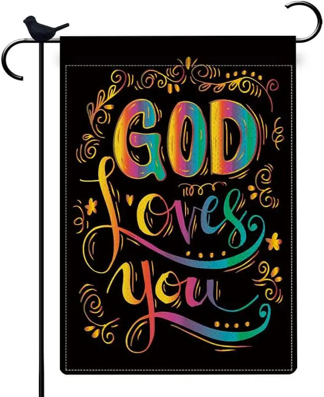 God Loves You Garden Flag God Christian Passion Week Nativity Yard Outdoor Decoration 12.5 x 18 Inch Jesus Inspirational Quote D