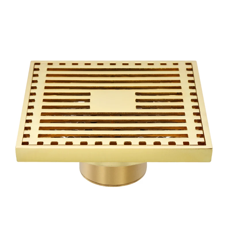Gold Color Brass Carved Flower Pattern Bathroom Shower Drain 4" Square Floor Drain Waste Grates Bathroom Accessory mzh201