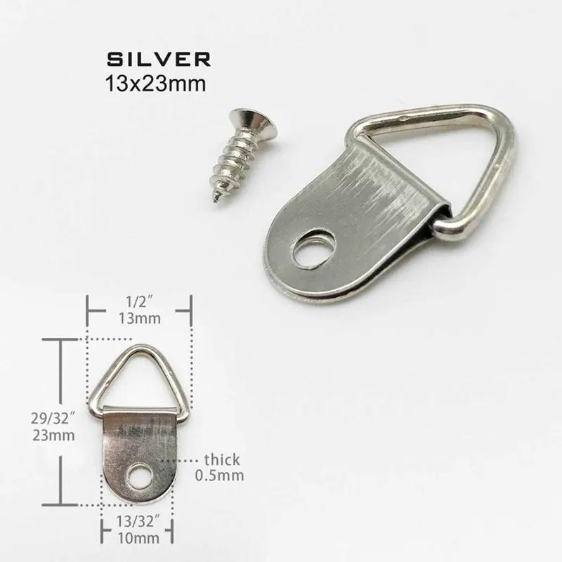Golden Silver Black Triangle D-Ring Hanging Oil Painting Mirror Picture Frame Hanger Art Work Photo Wall Hook with screws