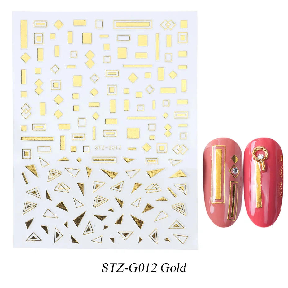 Product Description Specifications: Item: 3D Curve Stripe Lines Nail Stickers Quantity: 1 Sheet Size: 9 / 9 Color: Black and White, Gold, Rose Gold, Silver Feature: Self-adhesive nail stickers, very convenient, make nails trendy and fascinating anytime, anywhere! Nail stickers have a undeniable diploma of extensibility, which may match the nails larger Package: 1 Piece O Nail Sticker