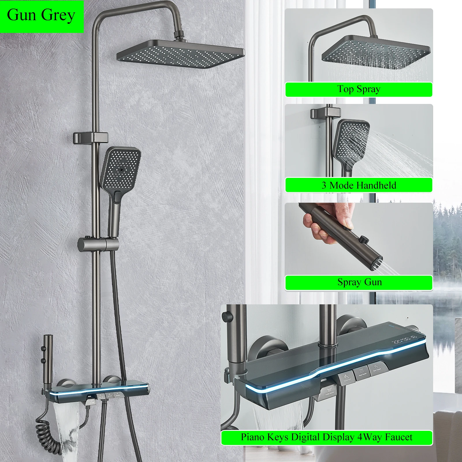 Gun Grey Adjustable Shower Faucet Set Rainfall Shower Head Bathroom Shower Mixer Tap Wall Mounted Hot Cold Shower Mixer Kits