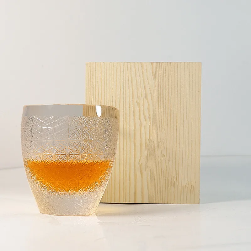Gypsophila Crystal Glass Cup With Wooden Box Luxurious Japanese Edo Kiriko Glassware Wine Tumbler Chrysanthemum Brandy Rock Mug
