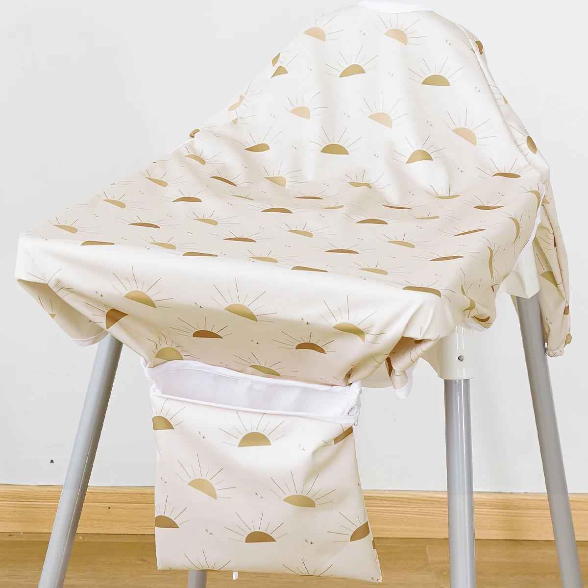 HappyFlute New Prints 90*92CM 1Piece Table Use Full Coverage Pocket Waterproof Long Sleeve Coverall High Chair Baby Feeding Bib