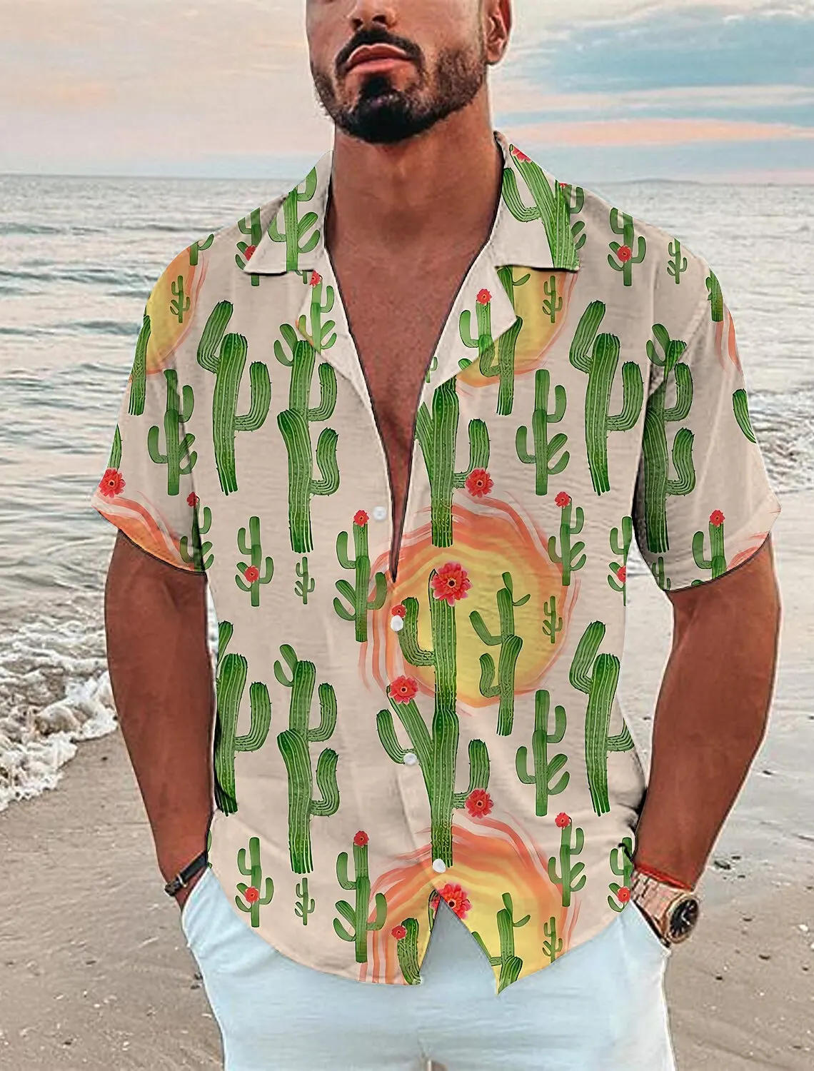 Herren hemd Kaktus 3D-Druck Herren bekleidung übergroßen Sommer neue Reise Hawaii Strand Hawaii Harajuku Kurzarm Shirt