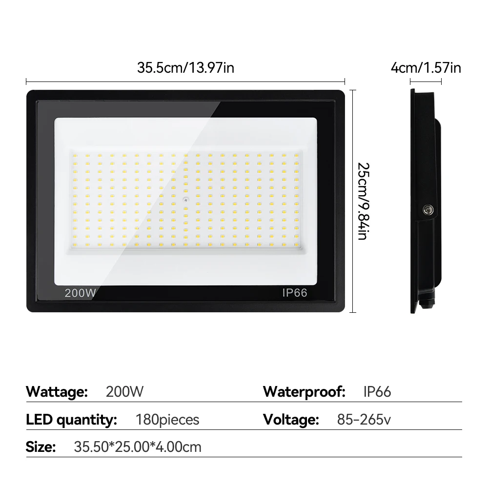 High Brightness LED Floodlight 200W 300W Spotlight Tempered Glass Waterproof Wall Light for Garden Street Gate Outdoor Lighting 【parameters】Power: 200W/300WLight supply color: regular whiteWorking voltage: Wide voltage design, 85-265VLight source type: Integrated with 240 high-efficiency 2835 LED beadsProtection level: IP66, water resistant and dustproof, suitable for harsh outdoors environmentsProduct type: FL collection floodlight, specifically designed for long-distance light fixtures and scene focusing 【Description】This FL sequence floodlight, with a magnificent adjustable power of 200W to 300W, paired with a vibrant white LED delicate source, straight illuminates your outside area 240 intently chosen 2835 LED beads, ensuring vivid and flippantly distributed light, it is going to manage advertisement lighting, landscape lighting, and commercial lighting conveniently voltage design, smoothly responding to foreign voltage fluctuations, making utilization extra bendy and handy immoderate protection level effectively resists rainwater and mud invasion, and might function stably even in the most harsh open air environments, making it your depended on lighting partner.