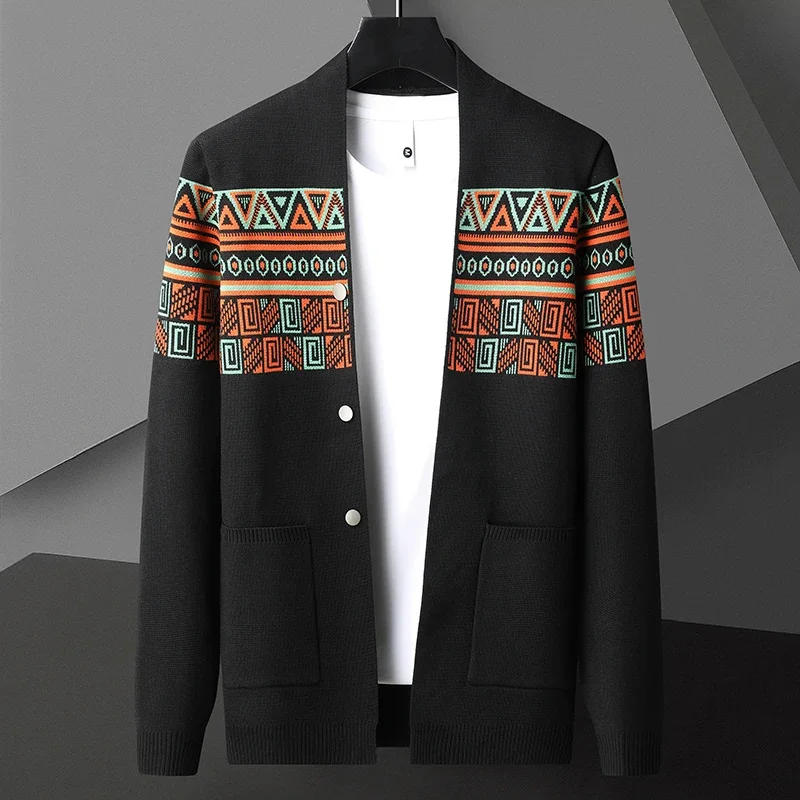 High end retro ethnic style knitted cardigan men's autumn 2024 new brand trend jacquard shawl casual versatile sweater coat
