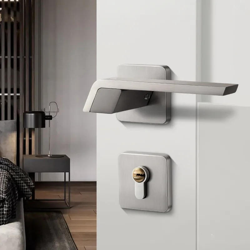 High Quality Zinc Alloy Bedroom Door Lock with Key Indoor Mute Security Door Locks Mechanical Handle Lockset Home Hardware