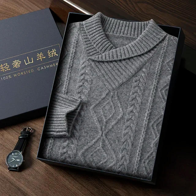 High-end Green Fruit Collar 100% Pure Cashmere Sweater For Men's Clothing V-Neck Loose Fitting and Thickened Knit Shirt