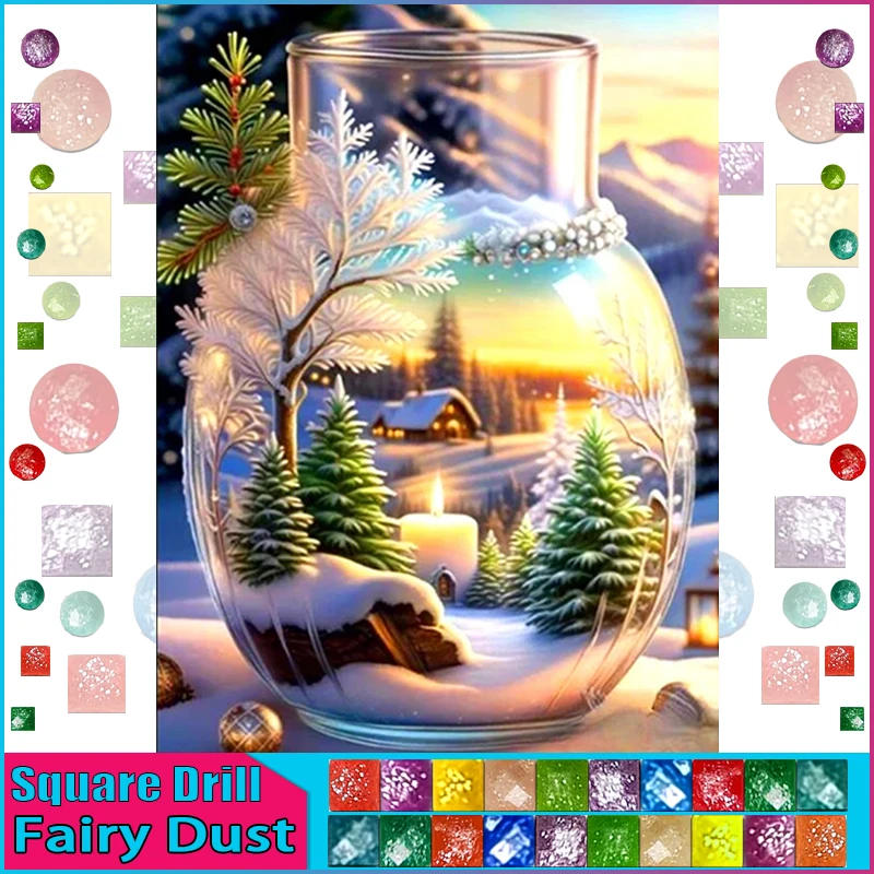 HOMFUN Fairy Dust AB 5D Rhinestone Crystal Decor Diy Diamond Painting "Landscapes Snow" 3D Cross Stitch Pattern Embroidery Gift
