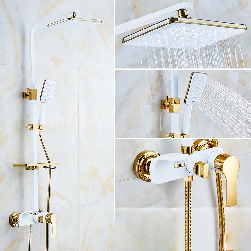 Hot Cold Bathroom Shower System 12 Inch Rain Shower Head Copper Bathroom Faucet Accessories Thermostatic Bathroom Shower Set