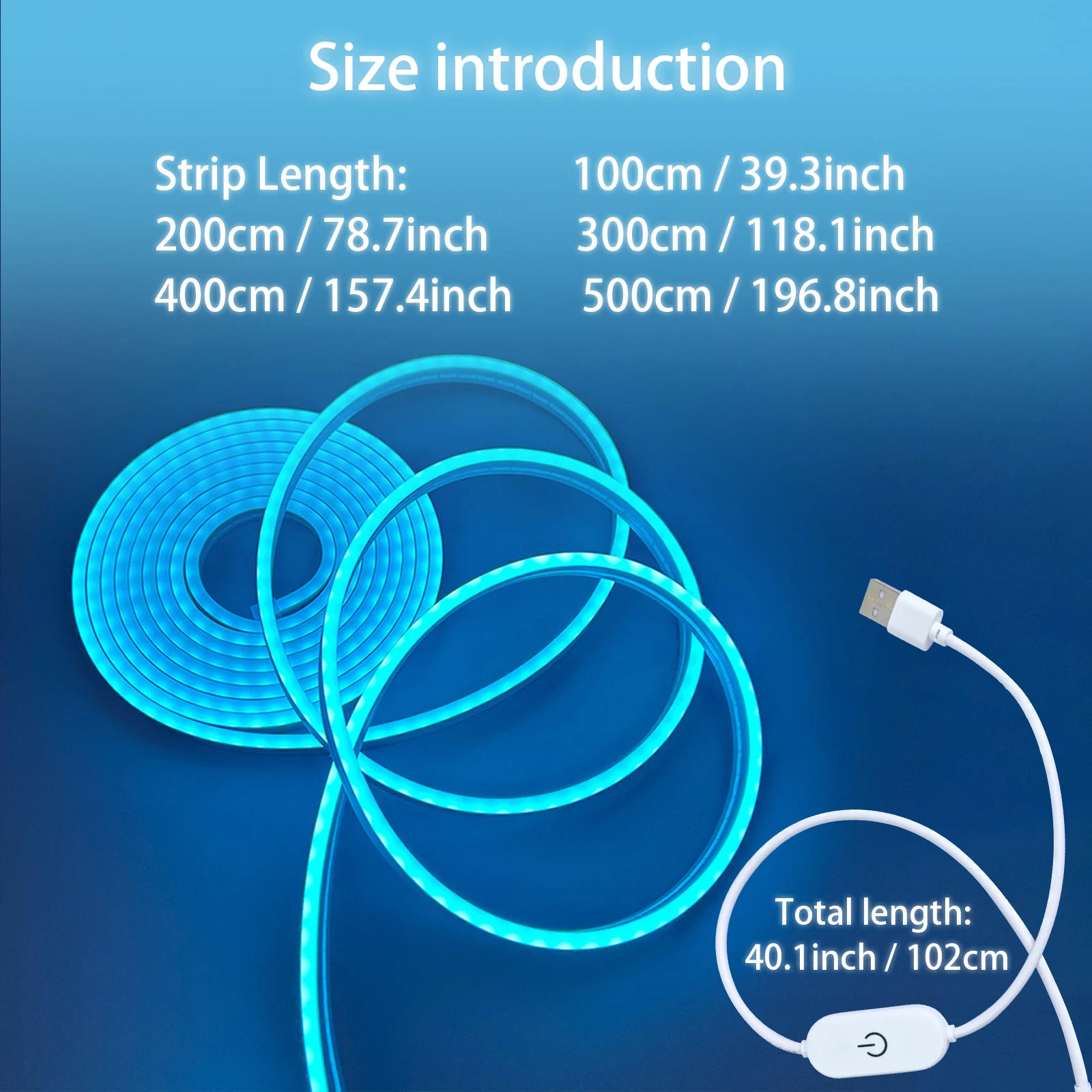 Ice Blue Led Neon Rope (100-500cm/39.3-196.8inch) Neon Light Strip, 5v Low Voltage Usb Power Supply, Flexible Neon Light Strip for Bedroom, Home, Office, Indoor and Outdoor Decoration
