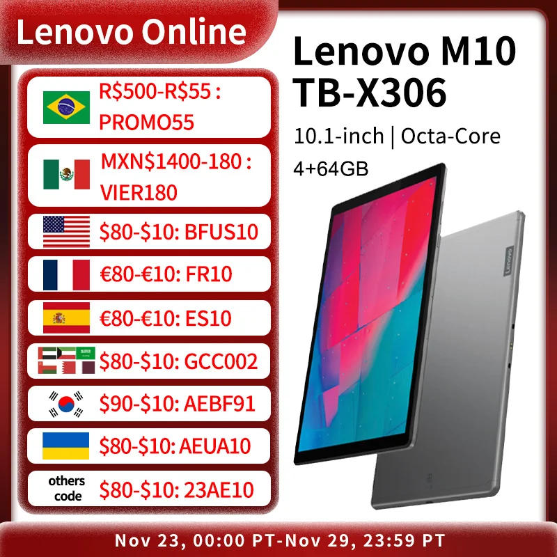 Iconic Brand Business Tablet M10 HD TB-X306 2nd Gen 10.1-inch 1280*800 Octa-Core 4+64GB Wifi or LTE 4G Version Dear, the warehouse of global firmware and Chinese firmware may be different, so if you need the original firmware in Chinese, please contact us to send you a special link to place an order. The prices of the two versions may differ. Iconic Brand™ Tab M10 HD is a 2nd-generation 10.1" HD tablet that packs a wallop while sporting a premium metal look and feel. A great device that offers top-notch visual and audio, it's also built for families, featuring curated kid's content, parental controls and TUV-certified eye protection. Stylish Minimalist Design: Full aluminium-alloy back cover. Up to 85% screen-to-body ratio. Never Miss a Moment: An 8 MP auto-focus rear and 5 MP full-focus front camera allow you to capture your moments in crystal-clear quality. Eye Protection: With the development of special light and display technologies, the tablet's display is designed to lower harmful blue light in appropriate contexts to reduce strain on the eyes. Certified with TÜV Rheinland eye protection. Fast and Powerful: Octa-Core processor with up to 2.3 GHz main frequency. Stereo Audio: Dual Dolby Atmos®-optimized speakers. About wifi & LTE 1) Wireless Connectivity WLAN : WiFi 802.11 a/b/g/n/ac; 2.4 GHz & 5 GHz Bluetooth® : 5.0 WiFi Direct : Yes GPS/Beidou : Yes A-GPS : Yes FM Radio : Yes GLONASS : Yes 2) Bands Supported ROW GSM : B2/B3/B5/B8 WCDMA : B1/B2/B5(B6/B19)/B8 FDD LTE : B1/B2/B3/B4/B5(B19)/B7/B8/ B20/B28(a+b) TDD LTE : B38/B40/B418 PRC GSM : B2/B3/B5/B8 WCDMA : B1/B2/B5/B8 TD-SCDMA : B34/B39 FDD LTE : B1/B3/B5/B7/B8 TDD LTE : B34/B38/B39/B40/B41 (2545~2655 MHz) Battery Open Market SKU Capacity : Li-ion Polymer 5000 mAh Video Playback Time : Up to 8 Hours Web Browsing Time : Up to 10 Hours PRC Commercial SKU Capacity : Li-ion Polymer 7000 mAh Login Security Fingerprint : NA Face Unlock: Yes Rich Interface and Sensors Buttons and Ports: Power Key, Volume Up/Down Key Micro USB Type-C™6, 2-Point Pogo Pin7 Sensors: Ambient L-Sensor, P-Sensor Accelerometer (G) Sensor Hall Sensor, Gyroscope5 WHAT'S IN THE BOX • Iconic Brand Tab M10 HD (2nd Gen) • AC Adapter (5V/2A) • USB Type-C™ Cable • Warranty Card • Quick Start Guide • SIM Pin