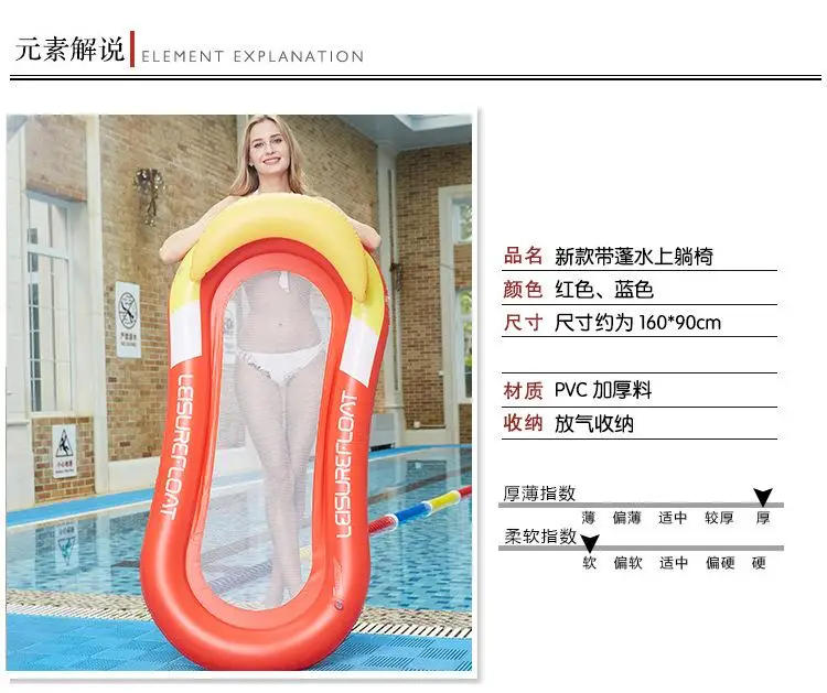 Inflatable Floating Row Water Hammock Swimming Air Mattresses Summer Pool Beach PVC Float Bed Lounger Swimming Pool Water Party Description: 1、Inflatable floating mattress provides consolation on the water, with a detachable awning to circumvent sun publicity 3、Environmentally pleasant PVC material, mushy material! Inflatable floating bed with mesh Large buoyancy with inflatable backrest and armrests 5、Durable inflatable floating mattress for straightforward wearing and storage Suitable for floating in lakes, beaches or swimming pools Specifications: Description: 1 Product Name: Water floating row again recliner water toys water inflatable bed 2 Material: environmentally pleasant PVC material + nylon mesh 3 Features: Inflatable floating bed with mesh, with removable sunshade Large buoyancy with inflatable backrest and armrests Easy to carry four (approx): After inflation: 160*90CM/62*35 Package size: 21*20*3CM/8*7*1 five Color: blue / crimson Package Included: 1*water floating recliner