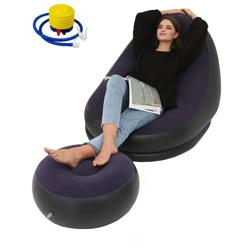 Inflatable sofa chairs and ottomans, foldable inflatable lazy sofa lounge chairs are convenient to carry(with an air pump)