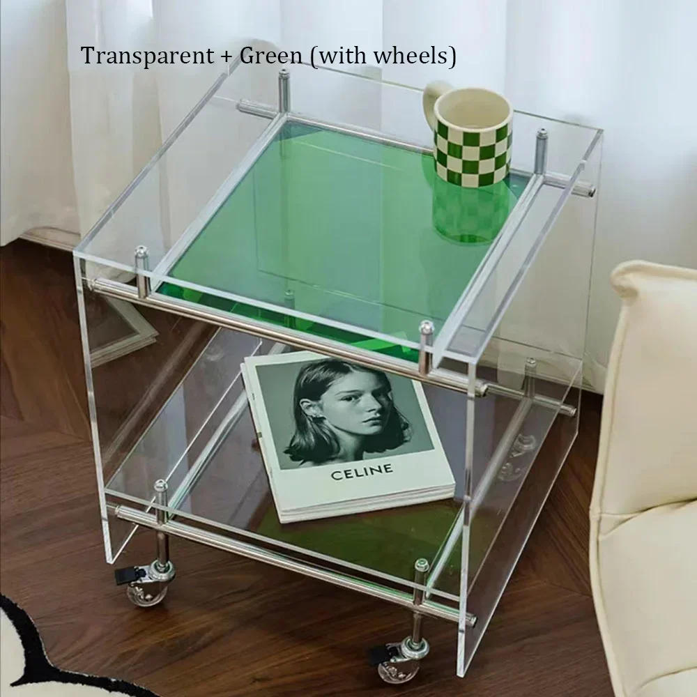 Ins Style Coffee Table Acrylic Tea Table for Living Room Glass Side Table Storage Cabinet Trolley with Wheels Home Furniture