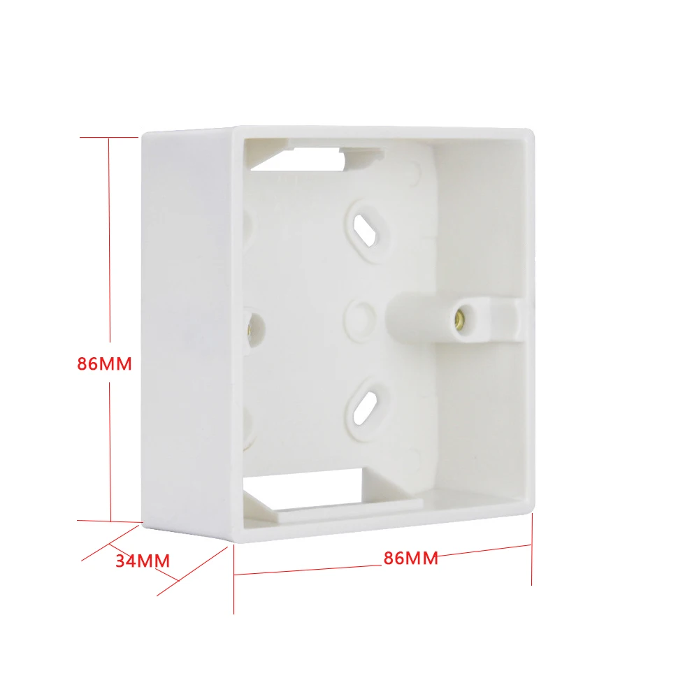 Features: Installation Box 86 Type 2 Gang 3 Gang 4 Gang Switch Socket Base Outfit Junction Box Surface Mount Bottom Box Wall Switch Socket Dark Box White Specifications: Box Size (L * W ): Singel: 86mm * 86mm * 35mm Double: 172mm * 86mm *35mm Trible: 258mm * 86mm * 35mm Quadruple: 345mm * 86mm * 34mm