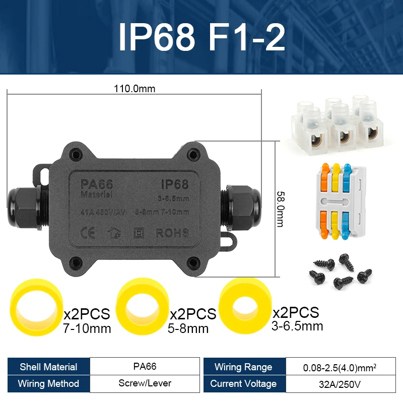 IP68 Waterproof Junction Box Outdoor Black 2/3/4 Way Mini Connector Box With PC Plastic And Terminal Designed For Buried Wiring