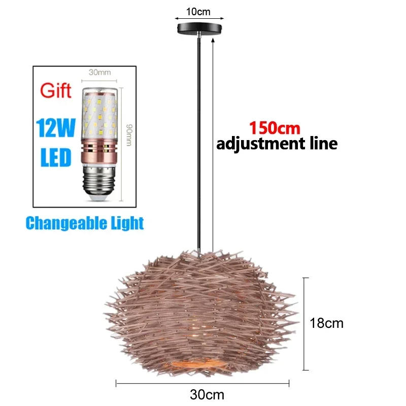 Japanese Bamboo Chandelier Chinese Style Rattan Woven Hanging Light Ceiling Lamp for Home Cafe Bar Decorate Restaurant Lighting