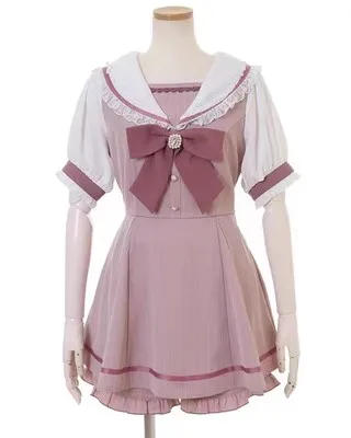 Japanese Style Women's Outfits Sailor Collar Plaid Rhinestone Bow Dress Shorts Set Sweet Lolita Mine Series Dress Two-Piece Suit