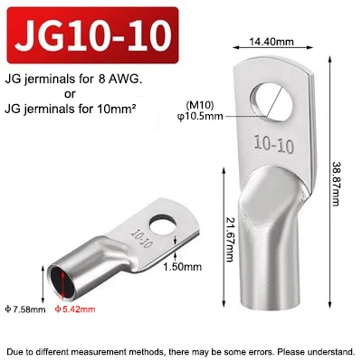 JG Copper Terminal Crimp Terminal Ring Lug Tin plated Terminal For Connection Electric cable Power M6 M8 M10 M12 Solid Connector