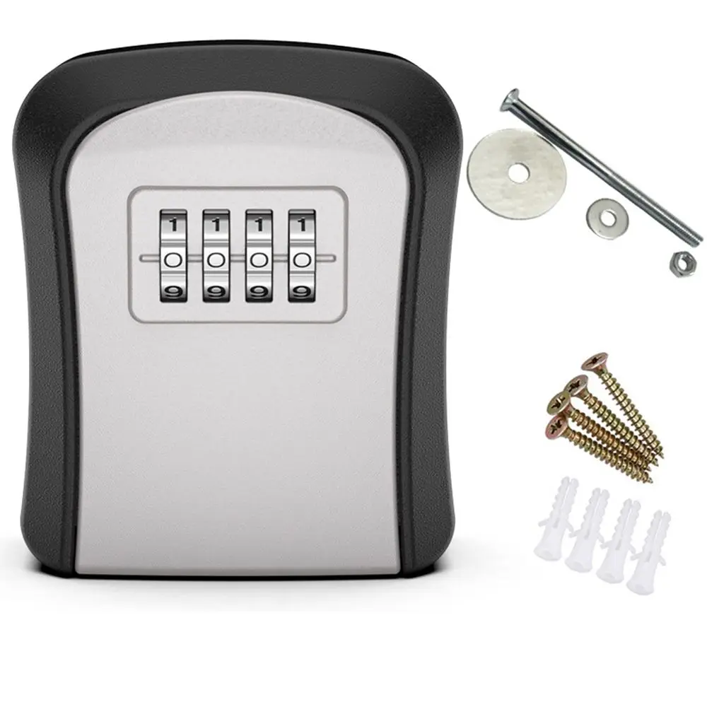 Key Safe Box 4 Digit Combination Lock Key Security Storage Case Outdoor Wall Mounted Anti-theft Key Lock Box Door Lock Code Box