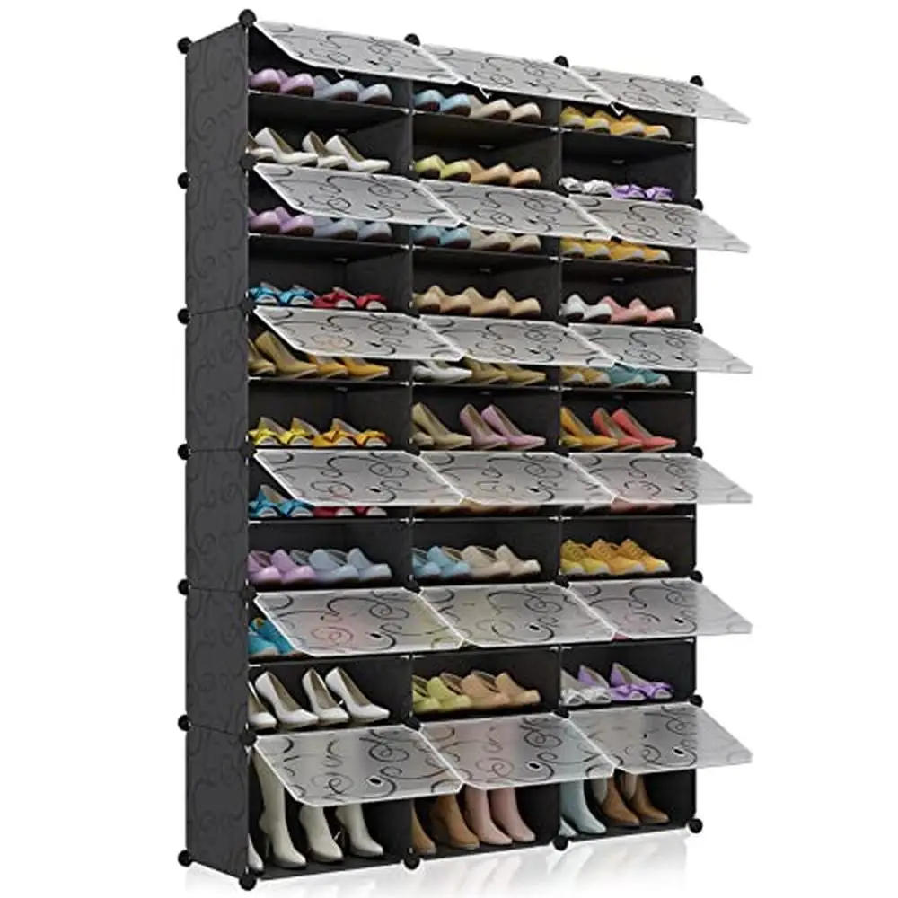 Large Detachable 72-Pairs Shoe Storage Organizer Cabinet with Stylish Door Panel DIY Plastic Shoe Rack Shelves Living Room and