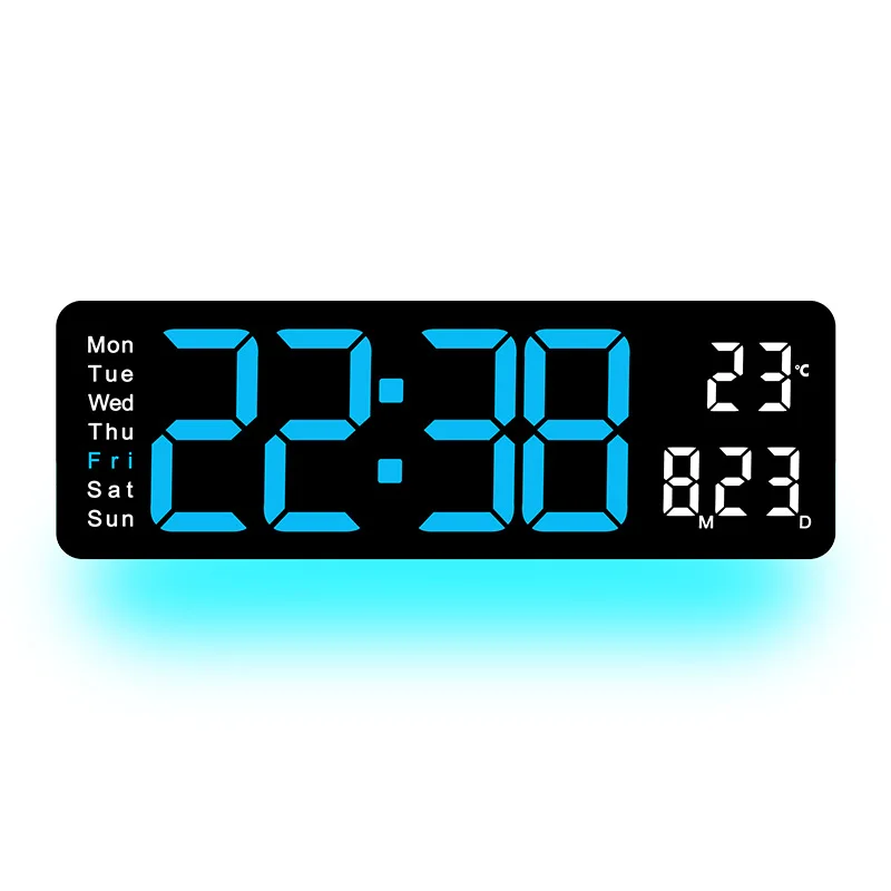 Large Digital Wall Clock LED Alarm Clock Ambient Lights Temp Date Week Display with Remote Control Clock for Home Living Room