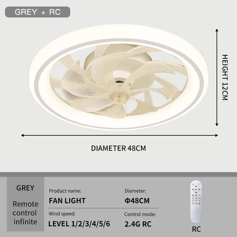 LED Ceiling Fan Light, Low-key Ceiling Fan with RGB Light, Remote Control Dimming Remote Control Bedroom Living Room Dining Room