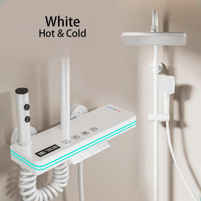 LED Digital Atmosphere Shower System Bathroom Hot Cold Mixer Bath Set Bathtub Wall Mount SPA Rain Fall Piano Button Shower Set