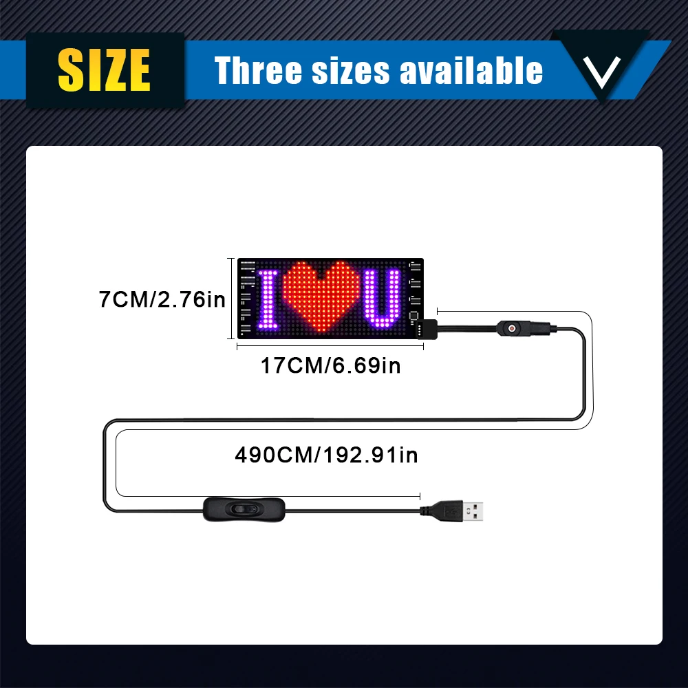 Scene UsageCan be used in any scene, such as stores, Christmas, Halloween, cars, hotels, offices, etc various sizes for you to chooseAPP link and operationThe APP makes use of Bluetooth connection to change your text, pattern, color, font size, and several contents would be played at will, making you more colourful and attractive.